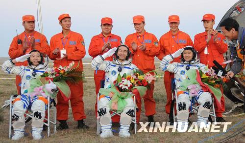 9月28日,神舟七號飛船返回艙順利著落,三名航天員翟志剛、劉伯明、景海鵬在經(jīng)過15-20分鐘的重力再適應(yīng)后全部出艙。首先出艙的是翟志剛,第二個出艙的是劉伯明,第三個出艙的是景海鵬。