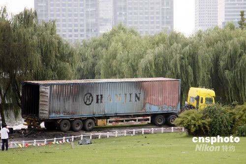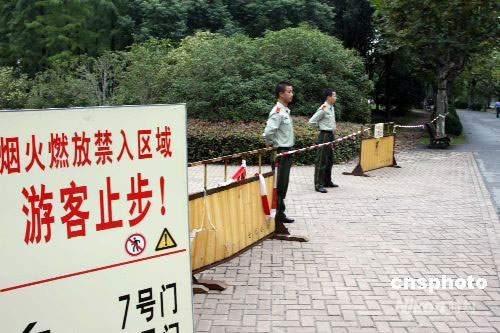 10月5日中午12時(shí)30分左右,上海市浦東新區(qū)世紀(jì)公園7號(hào)門附近發(fā)生一起煙花爆炸事故,1名煙花技師在搬運(yùn)煙花裝車的過程中,煙花突然在車廂內(nèi)發(fā)生爆炸,致其當(dāng)場(chǎng)死亡,所幸無游客傷亡。據(jù)警方初步調(diào)查,該煙花技師姓卜,湖南瀏陽人。9月30日、10月3日、10月6日,上海世紀(jì)公園舉辦三個(gè)音樂煙花節(jié)表演,大量煙花堆積在燃放區(qū)域。中新社發(fā) 宣克炅 攝