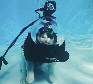 據(jù)英國(guó)媒體12日?qǐng)?bào)道,美國(guó)男子吉恩·艾爾巴是一名潛水愛(ài)好者,為了讓自己家的寵物狗穆特雷、寵物貓霍凱爾也能夠和他一起在海底潛水遨游,艾爾巴苦心研究,發(fā)明出了一種神奇的“動(dòng)物潛水服”,穿上這種神奇潛水服后,他家的寵物貓和寵物狗也能潛入水底,充分享受海底探險(xiǎn)的樂(lè)趣了。