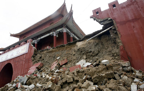 13日清晨,三亞崖州古城文明門城樓的西北角一段城墻發(fā)生坍。三亞市博物館的工作人員在進行初步的現(xiàn)場勘查后,指出了城墻坍塌的主要原因:由于三亞連日大雨,文明門的城樓排水系統(tǒng)不暢,水滲進城墻內(nèi),造成城墻內(nèi)的沙土膨脹,擠壓城墻。慶幸的是,坍塌發(fā)生在凌晨,沒有發(fā)生人員傷亡。