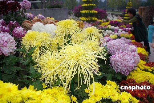 10月13日,游客在北京植物園菊花展區(qū)內(nèi)流連忘返,頻頻發(fā)出贊嘆之聲。在本屆花展中,公園將菊花作成了各種菊花塔、盤龍?jiān)煨;同時(shí)還用菊花打造了色彩明快的花帶。目前園中有1000多個(gè)品種10萬株菊花。中新社發(fā) 九州 攝