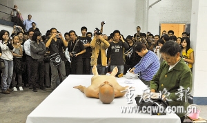 黃淋告訴記者,他表演的目的是將一個日常化的場景變得陌生,讓觀者產(chǎn)生各種各樣的情緒和思考。兩位老太太則不管那么多,她們來只是為了各自50元的報酬。兩人都在黃桷坪大街上擺攤擦皮鞋,身邊的人也常常到美院當模特,對裸露這種事也覺得平常。“擦他的身體,就像給我孫兒洗澡!逼渲幸晃焕咸f。 (記者 李藜/文 冉文/攝)