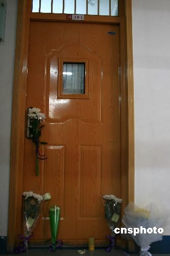 2008年10月29日下午,中國政法大學(xué)師生在慘案發(fā)生地點(diǎn)法大端201教室擺放鮮花寄托對(duì)遇難老師的沉痛哀思。28日晚上6點(diǎn)40分左右,中國政法大學(xué)昌平校區(qū)端升樓201室內(nèi),該校法學(xué)院教授程春明在上課前,被一個(gè)手持菜刀沖入教室的人砍倒,隨后不治身亡。據(jù)該校目擊學(xué)生稱,嫌疑人為該校政管學(xué)院大四學(xué)生。中新社發(fā) rain 攝