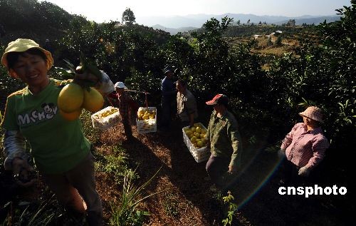 十月底,江西省安遠縣的臍橙園里,果農(nóng)包裝豐收的臍橙。全國即將迎來柑橘類產(chǎn)品上市高峰。目前,中國各級農(nóng)業(yè)部門已有效控制果樹蛆蟲災害,并為消費者推薦優(yōu)質(zhì)柑橘果品。中新社發(fā) 廖攀 攝