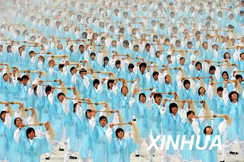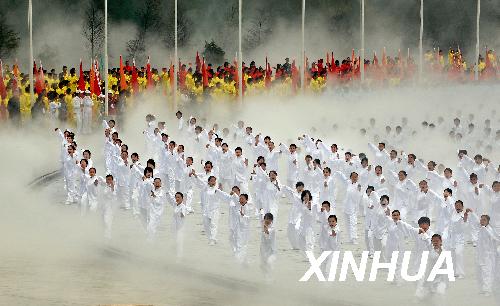 10月30日,太極拳愛好者在表演太極拳。當日,第三屆世界傳統(tǒng)武術(shù)節(jié)系列活動之一——“走進武當”萬人舞太極在武當山風景區(qū)舉行。來自美國、英國、俄羅斯、澳大利亞和中國等69個國家和地區(qū)的近2000名武術(shù)愛好者,共同欣賞了這一大型武術(shù)表演。新華社記者余國慶攝