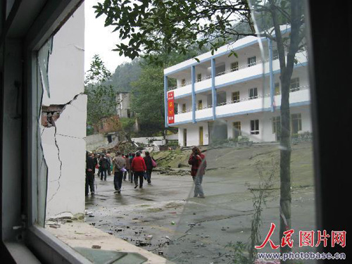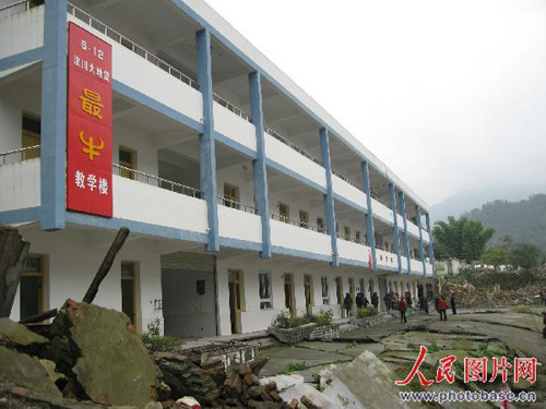 2008年10月,一批來自成都市的游客正在“5·12”汶川大地震“最牛”教學樓地震遺跡內(nèi)參觀。據(jù)悉,“5·12”汶川大地震發(fā)生后,一條地震斷裂帶剛好從四川省彭州市白鹿鎮(zhèn)中心校校區(qū)內(nèi)穿過,從而導(dǎo)致一棟新建教學樓被整體抬高近3米,樓體依然屹立原地不倒;而在其旁邊的教師宿舍完全垮塌,舊教學樓、辦公樓均成危房,與“長高”的新教學樓相對10多米遠、且在同一時間施工建設(shè)、同一地面高度的一棟四層新教學樓,成了鮮明的參照物。會“長高”的教學樓便被當?shù)厝朔Q作是:“5.12”汶川特大地震“最!钡慕虒W樓。彭州市相關(guān)部門特將此校教學樓地震遺跡作為旅游資源開發(fā)利用。目前,每天都有二三百人的游客來此觀光“最!钡慕虒W樓地震遺跡。