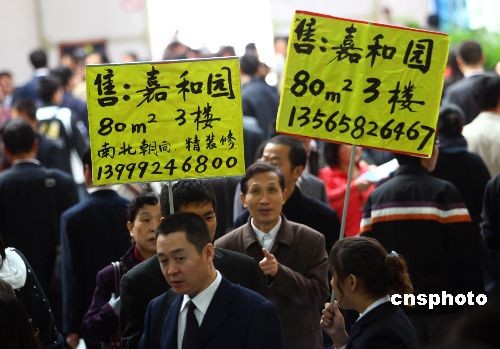 11月1日,新疆(秋季)房地產(chǎn)人居博覽會(huì)在烏魯木齊召開,眾多當(dāng)?shù)鼐窐潜P齊聚博覽會(huì)。由于近期房?jī)r(jià)回落,本屆房產(chǎn)博覽會(huì)吸引了大批準(zhǔn)備購房的市民前來一探究竟。圖為博覽會(huì)現(xiàn)場(chǎng)一些房產(chǎn)公司工作人員手舉“二手房廣告”在購房者中間穿梭。中新社發(fā) 劉新 攝