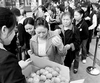 11月2日上午,成都大型賣場紛紛開門營業(yè)時,由省農業(yè)廳等單位共同組織的“萬人免費品嘗柑橘活動”也正式在各家賣場啟動。在春熙路一大型賣場內,當市民們爭相走向免費品嘗點時,農業(yè)部副部長陳曉華、副省長張作哈、省農業(yè)廳廳長任永昌等領導也走到了柑橘品嘗點前,細細品嘗起這些剛從果農柑橘園子中摘下的新鮮柑橘。在他們的帶領下,原本購物的市民也紛紛停下腳步,走到了品嘗點品嘗柑橘。“目前市場上的橘子,包括今天免費品嘗的20噸橘子都是經過了相關部門檢驗的,絕對沒有問題,而且品質很好!笔∞r業(yè)廳廳長任永昌表示。