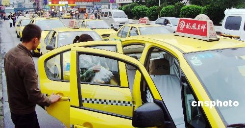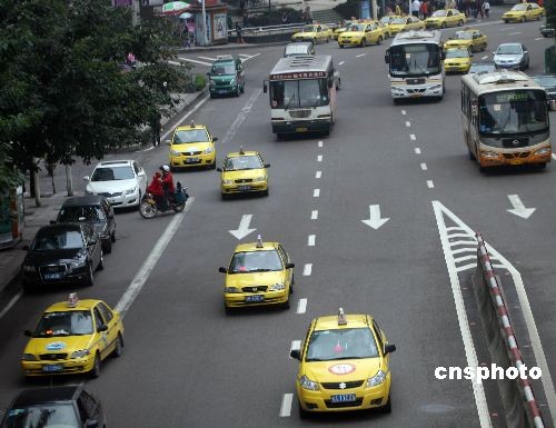 十一月五日,在重慶市菜園壩火車站附近的的士候車站,停靠著不少出租車等待市民乘坐。三日清晨,重慶主城部分出租車因受阻不能正常營(yíng)運(yùn),給當(dāng)?shù)厝罕姵鲂性斐刹恍±щy。當(dāng)?shù)卣谌兆龀鼍o急部署,采取多項(xiàng)有力措施,積極解決出租車停運(yùn)事件。目前,重慶主城區(qū)八千余輛出租車已全面恢復(fù)營(yíng)運(yùn)。
