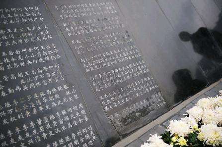 紀(jì)念臺上,鐫刻著地震中遇難者的名字 攝影 雷宇