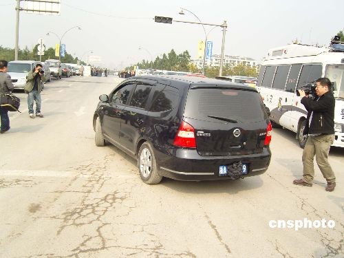 一輛黑色的商務(wù)車載著第五位遇難者尸體的車輛緩緩駛出事故現(xiàn)場。中新社發(fā) 姜越潮 王磊 攝