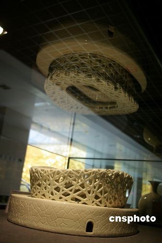 11月19日,陶瓷“鳥(niǎo)巢”作品亮相北京中華民族藝術(shù)珍品博物館。中新社發(fā) 九州 攝
