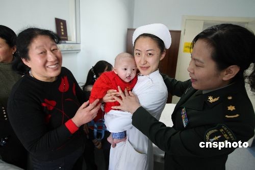 11月20日,二炮總醫(yī)院與美國(guó)“微笑列車(chē)”基金會(huì)達(dá)成合作協(xié)議,軍內(nèi)首個(gè)免費(fèi)為唇腭裂患者實(shí)施手術(shù)大型公益活動(dòng)正式啟動(dòng)。唇腭裂(俗稱兔唇、豁嘴兒)是最常見(jiàn)的先天畸形之一。美國(guó)“微笑列車(chē)”基金會(huì)是美籍華人王嘉廉先生于1999年在美國(guó)發(fā)起并正式注冊(cè)的非盈利性慈善組織,該組織的宗旨是免費(fèi)為唇腭裂患者實(shí)施矯治手術(shù)。目前“微笑列車(chē)”項(xiàng)目已為國(guó)內(nèi)萬(wàn)余名唇腭裂患者進(jìn)行了矯治手術(shù)。中新社發(fā) 任海霞 攝