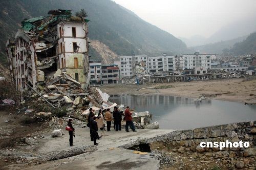 “5 12汶川大地震”發(fā)生后,因唐家山堰塞湖、“9 24”泥石流的洗劫,北川老縣城遺址發(fā)生很大變化,初冬時(shí)節(jié),人們經(jīng)過特批來到北川老縣城,參觀唐家山堰塞湖經(jīng)過這里的痕跡。中新社發(fā) 肖龍聯(lián) 攝