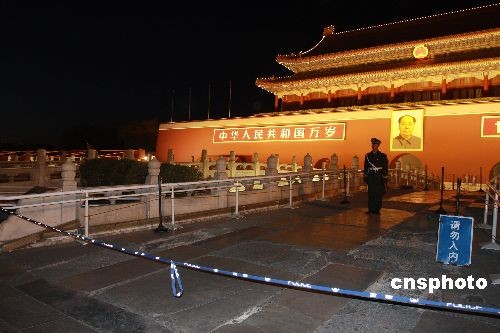 11月26日晚,北京天安門夜景如畫醉游人。記者從北京市文物局和天安門管委會獲悉,天安門金水橋保護修繕工程將于12月15日啟動,計劃2009年5月1日竣工,涉及橋面的修補面積約為327.69㎡,主要修繕內(nèi)容是對金水橋中心主橋(御路橋)的橋面加鋪保護性棧道,避免今后參觀游人對橋面造成損傷。中新社發(fā) 鄭雄增 攝