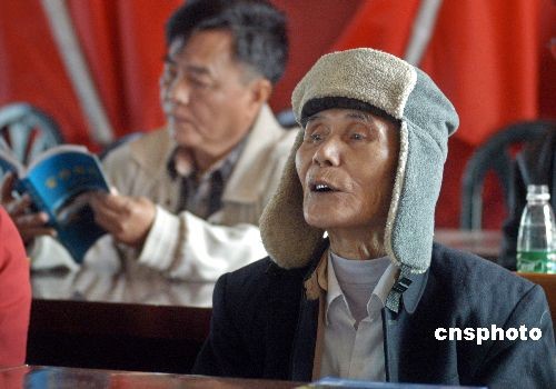 2008年11月29日,84歲高齡的海南瓊海市長(zhǎng)坡鎮(zhèn)藍(lán)田村民李士東老先生所著的《窗外微聞》一書(shū)發(fā)行儀式在長(zhǎng)坡鎮(zhèn)政府舉行。李老先生5年前曾自費(fèi)出版了一部24萬(wàn)字的文集《藍(lán)田穗》,成為十里八鄉(xiāng)的一大新聞。隨后,他又花費(fèi)兩年時(shí)間,在香煙盒紙上一手持放大鏡一手拿筆寫(xiě)成這部16萬(wàn)字的文集并自費(fèi)印刷發(fā)行。中新社發(fā) 蒙鐘德 攝