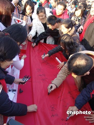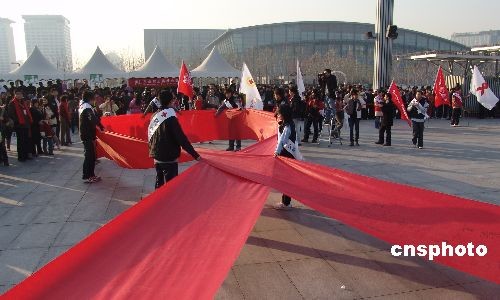 12月1日,在北京舉行的紀(jì)念世界艾滋病日大型宣傳活動(dòng)上,一些青年打開一幅巨型紅絲帶征集簽名,以表達(dá)對(duì)艾滋病感染者、病人及其家庭的關(guān)愛。當(dāng)天是世界艾滋病日,中國紅十字會(huì)總會(huì)、聯(lián)合國艾滋病規(guī)劃署和紅十字會(huì)與紅新月會(huì)國際聯(lián)合會(huì),共同在北京舉辦“同一個(gè)夢想——沒有歧視的世界”紀(jì)念世界艾滋病日大型宣傳活動(dòng)。中新社發(fā) 范欣 攝