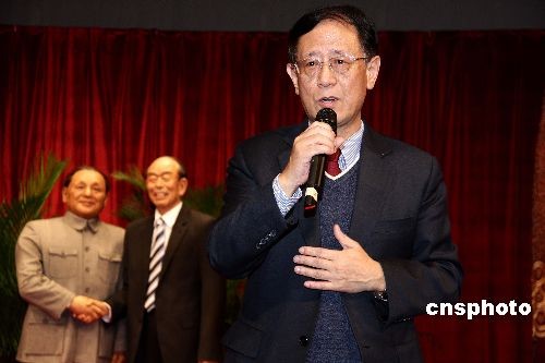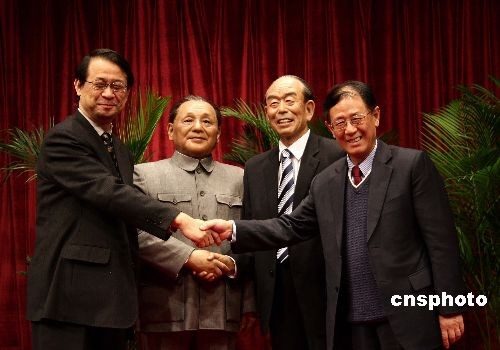 12月5日,中國人民和平外交促進(jìn)會、炎黃子孫熱愛祖國聯(lián)合會、中國偉人蠟像館等,在北京人民廣播電臺大廈啟動“平福中日,世代之約”活動。中國人民和平外交促進(jìn)會會長胡德平、日本國大使館公使泉裕泰參加了活動;顒觾x式上,中國人民向日本人民贈送了一份特殊意義的禮物——以蠟像藝術(shù)形式再現(xiàn)30年前鄧小平和福田赳夫簽訂“中日和平友好條約”的歷史時刻。中新社發(fā) 張愛東 攝