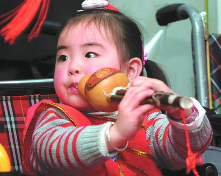 “春晚的導演叔叔和阿姨們,我們渴望上春晚!”昨日下午3時許,一支由12名地震致殘的孩子組成的“輪椅樂團”,在川大華西醫(yī)院地震康復(fù)中心舉辦了一場葫蘆絲演奏會。表演結(jié)束后,孩子們喊出了“渴望上春晚”的心聲。據(jù)悉,“輪椅樂團”的平均年齡僅10歲,其中最小的是3歲的宋馨懿。