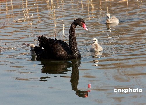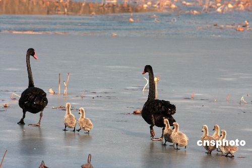 12月14日,北京圓明園,一對(duì)黑天鵝夫婦帶著8只未滿月的天鵝寶寶在享受著北京冬日溫暖的陽光。據(jù)介紹,8只小黑天鵝是11月22日出生。中新社發(fā) 鄭雄增 攝