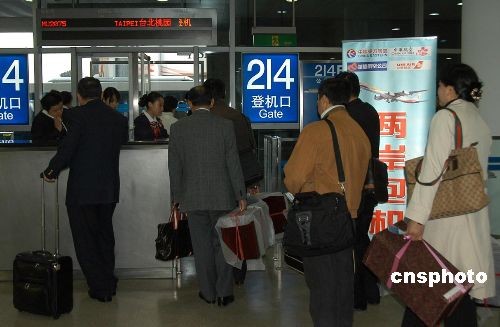 12月15日上午,中國(guó)東方航空公司MU2075航班搭載著150名旅客,從上海浦東國(guó)際機(jī)場(chǎng)順利起飛前往臺(tái)灣桃園機(jī)場(chǎng),拉開(kāi)大陸航空公司經(jīng)“截彎取直”的新航路前往臺(tái)灣的常態(tài)客運(yùn)包機(jī)序幕。圖為首航航班旅客辦理登機(jī)手續(xù)。中新社發(fā) 張明 攝
