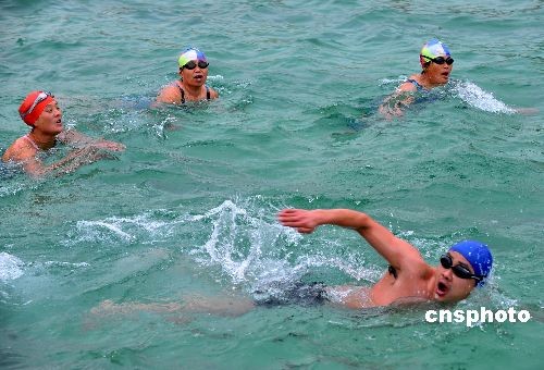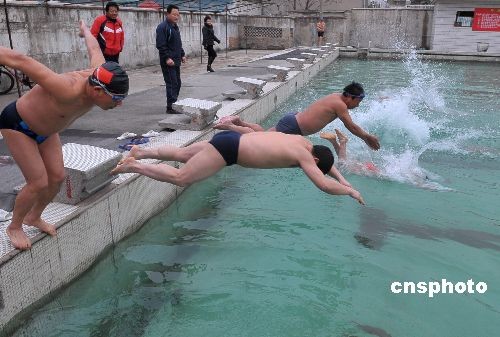 12月21日冬至,受北方較強(qiáng)冷空氣影響,江淮大地氣溫驟降。當(dāng)日下午,安徽鳳陽縣冬泳愛好者們頂著凜冽的寒風(fēng)在冰水中暢游,積極開展全面健身活動(dòng),鍛煉體魄和意志。中新社發(fā) 王家國 攝