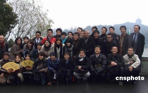12月24日上午,日本青少年友好使者代表團(tuán)一行38人搭船游覽杭州西湖,在“三潭映月”合影。新田理惠小姐表示:“早就聽說(shuō)西湖很美,果然很讓我驚喜。雖然不是晴天,但是現(xiàn)在的西湖讓人覺(jué)得特別寧?kù)o內(nèi)斂。”中新社發(fā) 周翌 攝