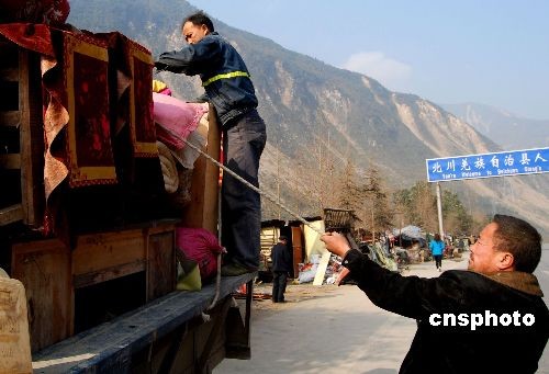 12月26日,北川第一羌寨--貓兒石“吉娜”羌寨竣工,當?shù)厍颊用耖_始陸續(xù)搬進新居。中新社發(fā) 胥輝 攝