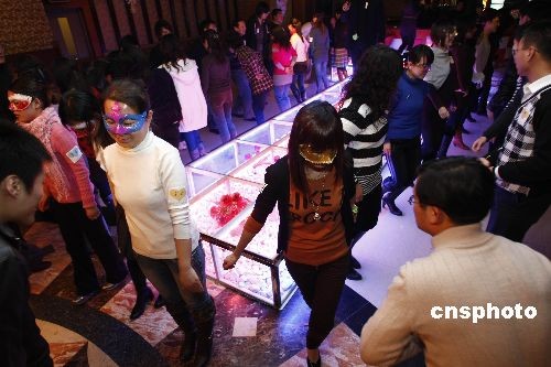 12月27日,百余名單身青年在北京參加一場化妝舞會。年輕人在歡快的樂曲中翩翩起舞。面具下的女青年拋開羞澀,與男舞伴竊竊私語。該活動的初衷也是為了引導年輕人在擇偶時拋開外在條件,認識到“相容成就幸;橐觥辈攀墙】祷閼倮砟睢V行律绨l(fā) 楊影懿 攝