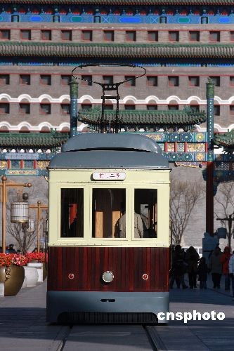 12月29日,北京前門大街“鐺鐺車”載客試運(yùn)行,吸引不少游客的目光。“鐺鐺車”已經(jīng)清洗一新,2009年元旦將正式開(kāi)通迎客,那“鐺鐺”的聲音時(shí)隔50年后將再次回到煥然一新的前門大街,成為新北京的一大亮點(diǎn)。中新社發(fā) 鄭雄增 攝