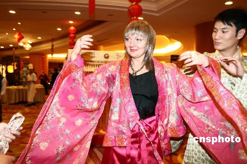此次年會(huì)的承辦方漢衣坊透露,隨著中國(guó)民族傳統(tǒng)文化熱的迅速升溫,中國(guó)文化已漸漸成為吸引國(guó)際眼球的新亮點(diǎn),此次年會(huì)的成功舉辦,就是一個(gè)很好的例證。語言不通的俄羅斯賓客對(duì)試穿漢服、漢式禮器及中國(guó)禮儀文化表現(xiàn)出的濃厚興趣和接受度,足以證明中國(guó)文化對(duì)境外人士具有巨大的魅力。