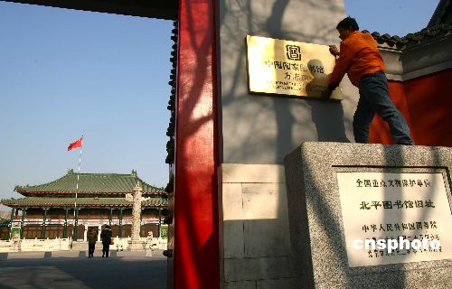 1月4日,中國國家圖書館方志館正式掛牌。國圖方志館位于文津街7號,與原有的國圖古籍館同址。在方志館臨瓊樓一層,還將新開設(shè)地方文獻第一閱覽室和地方文獻第二閱覽室,專門為讀者提供地方文獻資料服務(wù)。中新社發(fā) 富田 攝
