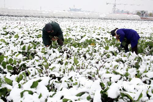 1月6日,湖北省枝江市市民正在采摘蔬菜。據(jù)氣象部門發(fā)布的信息表明,5日至6日,湖北省的西部地區(qū)普降中雪,省政府辦公廳已下發(fā)緊急通知,要求各市、州、縣人民政府,省政府有關(guān)部門認真做好應(yīng)對低溫凍害工作。中新社發(fā) 柳月 攝