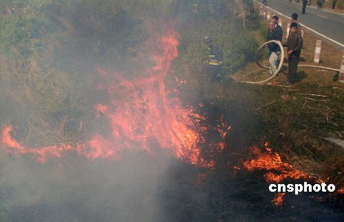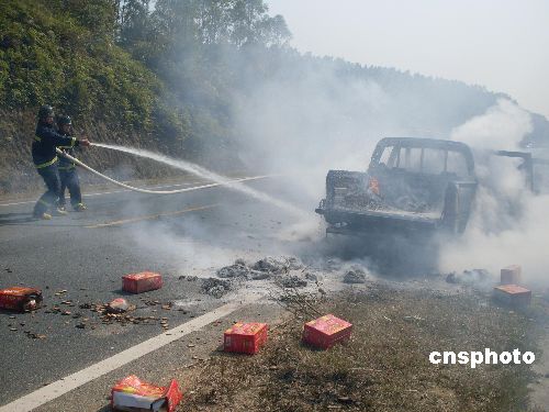 1月9日12點(diǎn)30分左右,廣西欽州市境內(nèi)一輛卡車突然起火,隨后引燃附近近千畝甘蔗林。欽州消防部門迅速趕到現(xiàn)場(chǎng)滅火,2個(gè)小時(shí)后大火被撲滅,事故無(wú)人員傷亡。中新社發(fā) 劉富強(qiáng) 攝