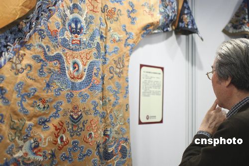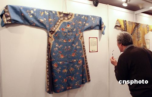 1月14日,北緯首拍在北京港澳中心舉行預(yù)展,16日上午舉行拍賣。這次北緯拍賣共推出宮廷藝術(shù)精品、中國名家油畫兩個專場120件拍品,最大亮點是集中亮相的30件清宮龍袍,包括雍正、乾隆、嘉慶、道光、光緒時期皇帝、親王、郡王、皇子、公主、后妃等所穿的朝服、吉服等。中新社發(fā) 盛佳鵬 攝