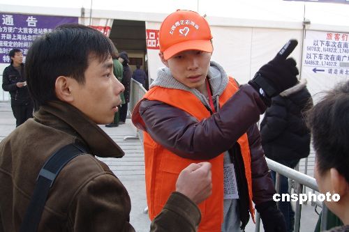 1月15日,為從容應(yīng)對上海站春運大客流到來,上海鐵路局團(tuán)委加強(qiáng)路地聯(lián)合,從全局及地方院校招募千余名青年志愿者,經(jīng)動員培訓(xùn)后迅速上崗,為旅客提供咨詢等服務(wù)。中新社發(fā) 陸應(yīng)果 攝