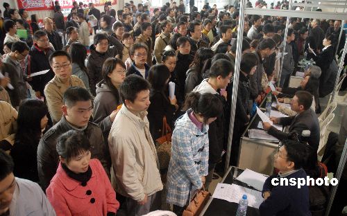 1月17日,福建省2009年春季大中專(zhuān)畢業(yè)生供需見(jiàn)面、雙向選擇大會(huì)在福州金山展覽城舉行。本次大會(huì)吸引了550多家用人單位前來(lái)招聘,為求職者提供近兩萬(wàn)多個(gè)就業(yè)崗位,幾萬(wàn)名大中專(zhuān)畢業(yè)生前來(lái)應(yīng)聘。大會(huì)為公益性活動(dòng),對(duì)參會(huì)單位和求職人員均實(shí)行免費(fèi),參會(huì)的對(duì)象包括各設(shè)區(qū)市人事局,省直和中央在閩單位,各類(lèi)企事業(yè)單位,各類(lèi)人才中介機(jī)構(gòu),2009年大中專(zhuān)畢業(yè)生、畢業(yè)研究生及往屆待就業(yè)畢業(yè)生。中新社發(fā) 張 斌 攝