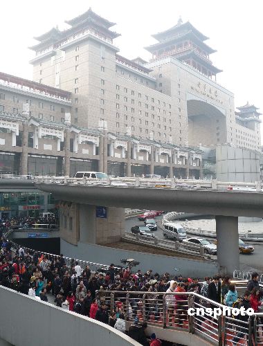 2009年1月17日,北京西站人頭攢動(dòng)、旅客如織。當(dāng)日,北京西站回家過年的“農(nóng)民工返鄉(xiāng)流、學(xué)生流、探親流”依舊強(qiáng)勁,并呈持續(xù)增長的趨勢。中新社發(fā) 玉龍 攝