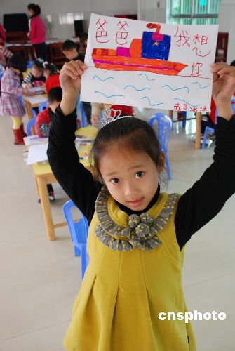 新春佳節(jié)來(lái)臨之際,海軍南海艦隊(duì)政治部幼兒園5歲半的郝冰冰和小朋友們一起畫(huà)了軍艦馳騁在深藍(lán)大洋的圖畫(huà),送給遠(yuǎn)在亞丁灣執(zhí)行護(hù)航任務(wù)的父母。中新社發(fā) 胡嘉 攝
