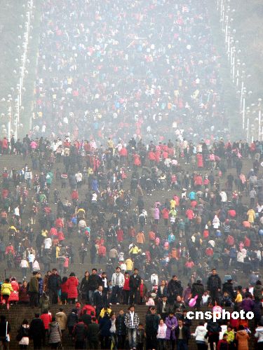 1月26日,重慶市云陽新縣城3萬多市民結(jié)伴登臨磐石城,訪古跡、看新城、賞平湖,以戶外健身活動的方式迎接新年。春節(jié)期間,三峽庫區(qū)的移民大縣云陽天氣晴朗,市民們紛紛走出戶外,廣場、公園、張飛廟、磐石城等風景區(qū)處處洋溢節(jié)日氣氛,大量游客和市民群眾在休閑中以各種不同方式歡快過節(jié)。中新社發(fā) 饒國君 攝