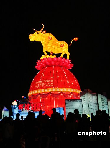 2009年1月28日,廈門元宵燈會在白鷺洲西公園璀璨亮燈,80組傳統(tǒng)工藝與現(xiàn)代科技完美結(jié)合的彩燈燈組齊亮相,讓廈門市民和各地游客充分感受了新年的喜慶與祥和氣氛。據(jù)悉,燈會將一直亮燈到2月12日(正月十八)。中新社發(fā) 陳地長 攝