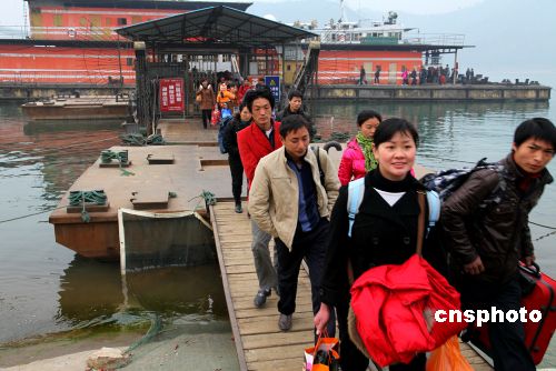 2月1日,47艘客船、高速客船出川,1.5萬多名出川農(nóng)民工返城,三峽庫區(qū)迎來節(jié)后春運首次高峰,海事、公安、港口加大出川旅客進港秩序維護,沒有一艘客船出現(xiàn)超載。中新社發(fā) 望作信 攝