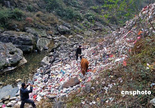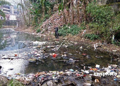 2月4日,重慶市云陽縣新陽鄉(xiāng)新陽小鎮(zhèn),被各種垃圾污染后的新陽小河令人觸目驚心。據了解,新陽小河是長江三峽庫區(qū)的小支流,是飲用水源一級保護區(qū),由于沒有垃圾處理站,當地居民及街道環(huán)衛(wèi)人員習慣把垃圾直接倒在河邊及河中,洪水季節(jié),這些垃圾將被洪水沖入三峽水庫。中新社發(fā) 劉君鳳 攝