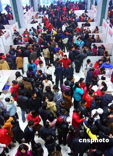 2月6日,江蘇省海安縣舉行“春天的陽光”農(nóng)民工就業(yè)專場招聘會(huì),125家用人單位3600多個(gè)崗位,吸引了18000多名農(nóng)民工前來應(yīng)聘。中新社發(fā) 仇穩(wěn)山 攝