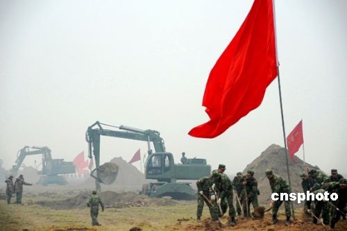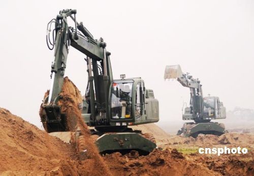 2月8日,剛剛赴蘇丹維和歸來(lái)的駐沁某部官兵正在河南省新鄉(xiāng)市封丘縣柳園口黃河灘區(qū)開挖引黃灌溉渠。據(jù)了解,駐沁某部接濟(jì)南軍區(qū)命令,于2月7日緊急馳援新鄉(xiāng)市封丘縣柳園口執(zhí)行抗旱救災(zāi)。據(jù)悉,該部將用5天時(shí)間在柳園口黃河灘開挖一條長(zhǎng)2700米、寬18米、深3.5米,總工程量11.6萬(wàn)立方米的引黃灌溉渠,渠道開通后將解決400萬(wàn)畝麥田的灌溉問(wèn)題。 中新社發(fā) 杜文旭 攝