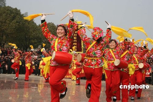2月9日下午,來自杭州市桐廬縣各鄉(xiāng)鎮(zhèn)、街道的16支腰鼓隊(duì)、上千名腰鼓手齊聚桐廬縣城中心廣場,為現(xiàn)場數(shù)萬名群眾帶來了一波波精彩的腰鼓表演,在元宵佳節(jié)為桐廬縣百姓送上了一份歡快的“文化大餐”。中新社發(fā) 張潔 攝
