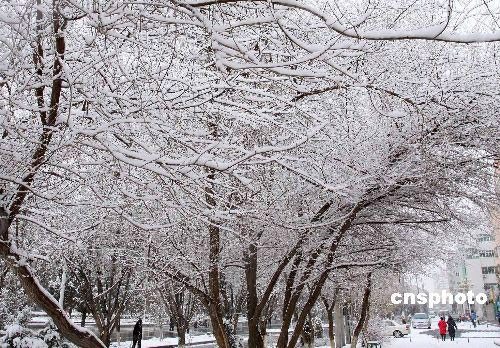 2月13日,新疆哈密地區(qū)出現(xiàn)降雪降溫天氣,哈密市街頭的樹木上掛滿了白雪,形成了美麗的雪凇景象。據(jù)了解,地處盆地的哈密市在春天出現(xiàn)雪凇現(xiàn)象十分少見。中新社發(fā) 蔡增樂 攝