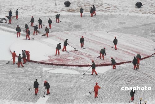 2月19日,東北特鋼集團(tuán)大連基地員工們?cè)谇宄e雪。當(dāng)日,遼寧大連市再次降雪。兩天來,大連市各單位及廣大市民,以雪為令,及時(shí)清除責(zé)任區(qū)路面積雪,保障道路暢通和市容整潔。中新社發(fā) 劉德斌 攝