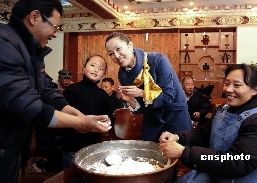 藏歷新年前夕,在中國(guó)國(guó)際航空公司擔(dān)任國(guó)際航線空姐職務(wù)的德慶央宗專程從北京帶著父母趕回拉薩,和親朋好友歡度藏歷新年。德慶央宗的父親曾供職于中國(guó)《民族畫(huà)報(bào)》,母親供職于中國(guó)藏學(xué)研究中心,他們一家已經(jīng)多年沒(méi)有回西藏過(guò)藏歷新年。中新社發(fā) 廖攀 攝