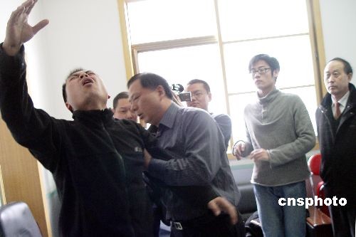 2月28日,年齡超過五十歲的企業(yè)人士蔡玉建,在河南鄭州演示“少林點(diǎn)穴功”,醫(yī)學(xué)專家現(xiàn)場(chǎng)觀看后稱,這不是什么神秘的東西,屬于人體打擊正常反應(yīng)。大約一周前,經(jīng)營(yíng)生物保健產(chǎn)品的蔡玉建被當(dāng)?shù)貓?bào)紙曝出擅長(zhǎng)點(diǎn)穴,引起媒體和民眾的廣泛關(guān)注。28日,蔡玉建和其弟子釋延力的表演在鄭州市一家醫(yī)院上演,觀者有媒體、醫(yī)護(hù)人員和專家等。中新社發(fā) 李志全 攝